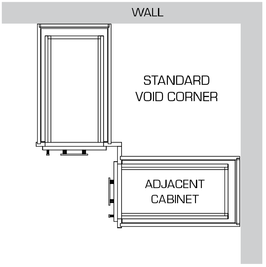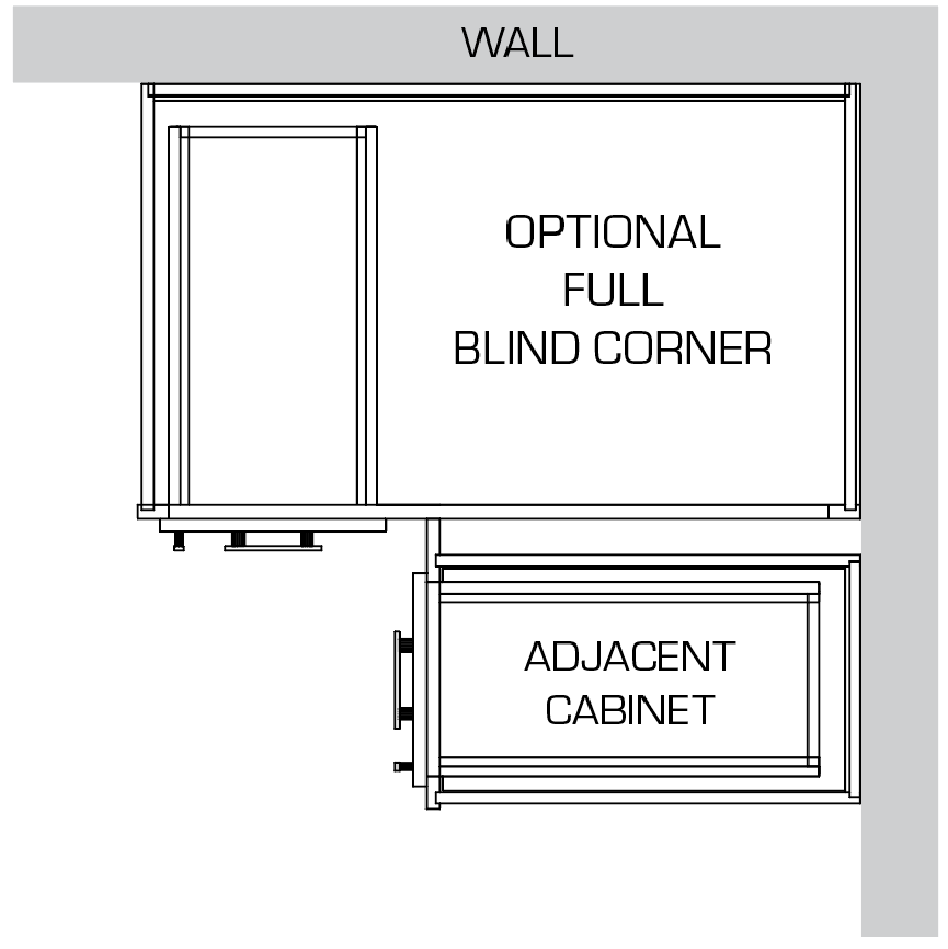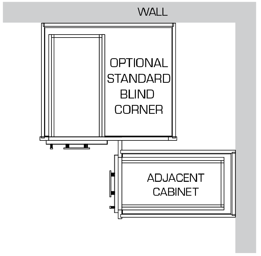 Lanz standard cabinet construction is blind upper cabinet corners and void base cabinet corners. In face frame cabinet construction an optional upgrade blind base corner is available in partial 12″ or a full 24″. Frameless construction only allows for a 12″ blind base corner.