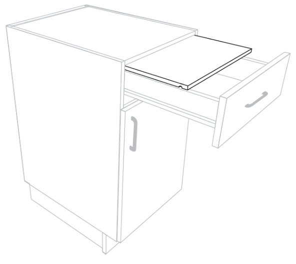 Removable breadboards concealed in a top drawer save space and allow for additional work surface. In some cases two 15 inch breadboards can make up the requirement of a 30 inch workspace for accessibility requirements.