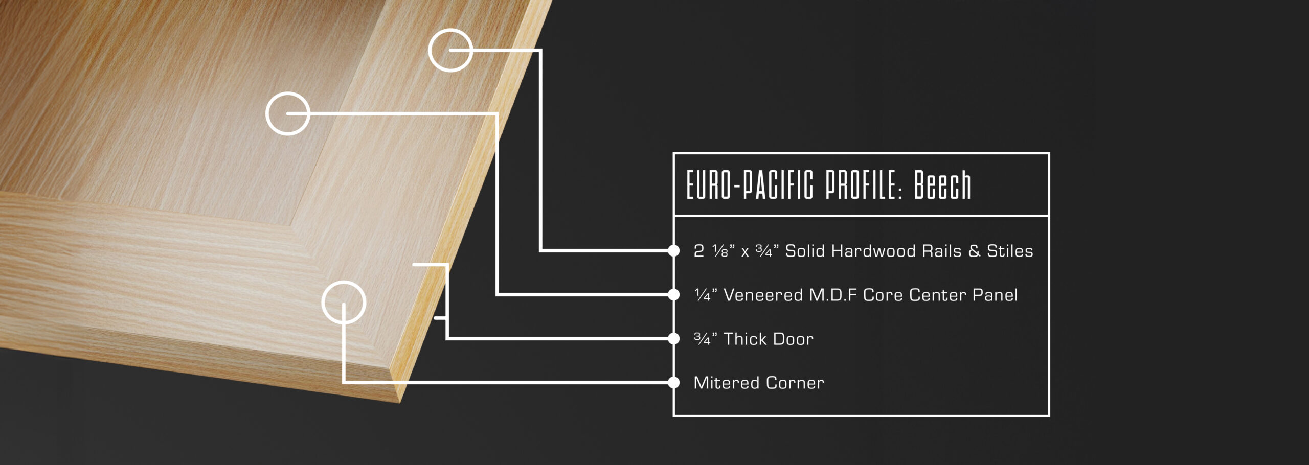 FRAMELESS mitered shaker doors available in six hardwoods featuring 10 Oak, 10 Alder, and 12 Beech stains