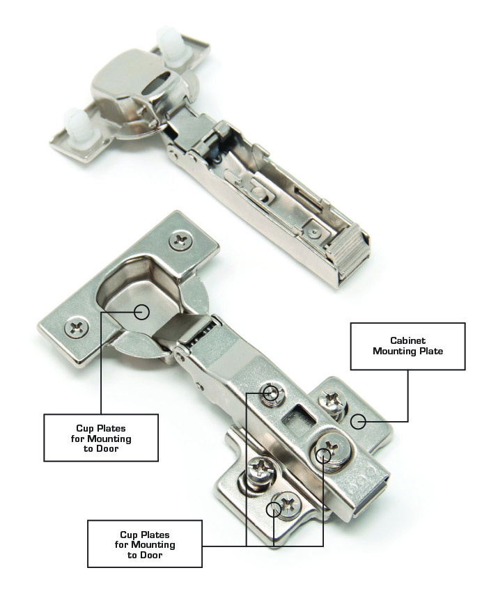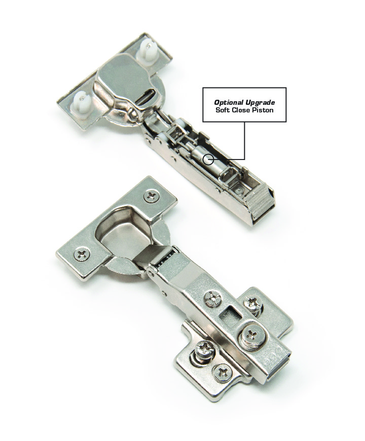 SOFT-CLOSE cabinet door hinges work like self-closing cabinet hinges but with the addition of a piston that absorbs the excess energy. This hydraulic piston mechanism with sound dampers gently guides the door through the arc of the swing and into contact with the cabinet minimizing the noise of the door shutting while also extending the lifespan of the doors.