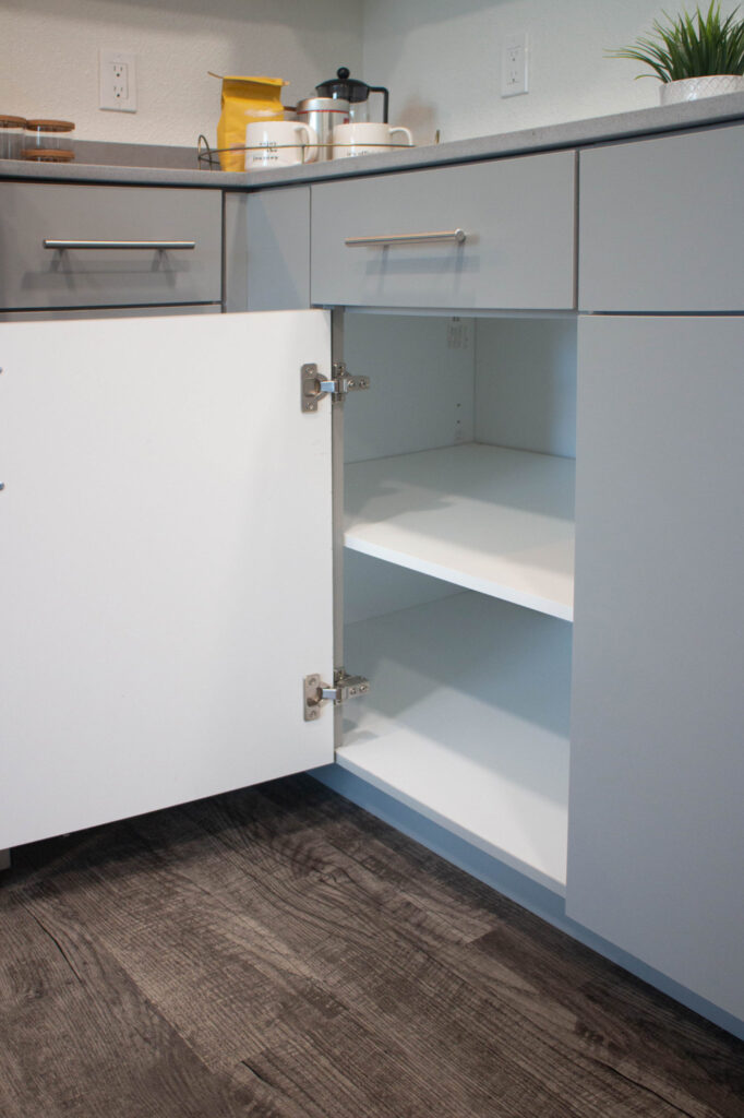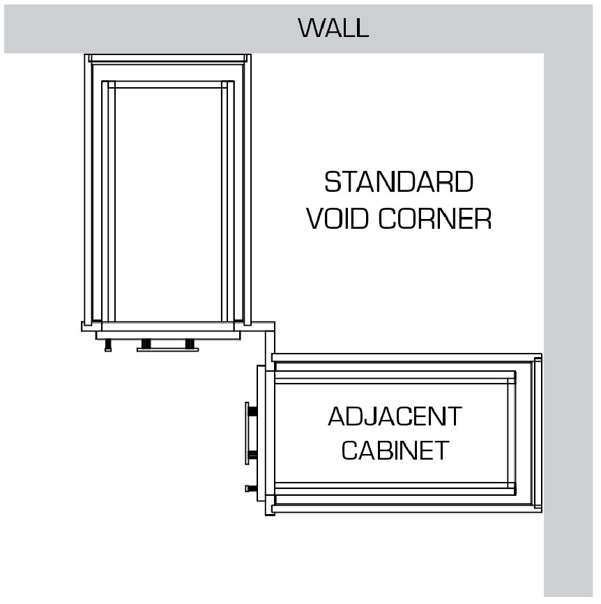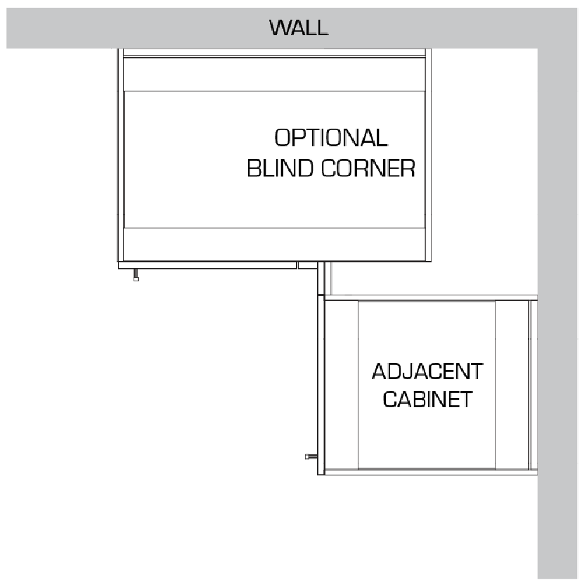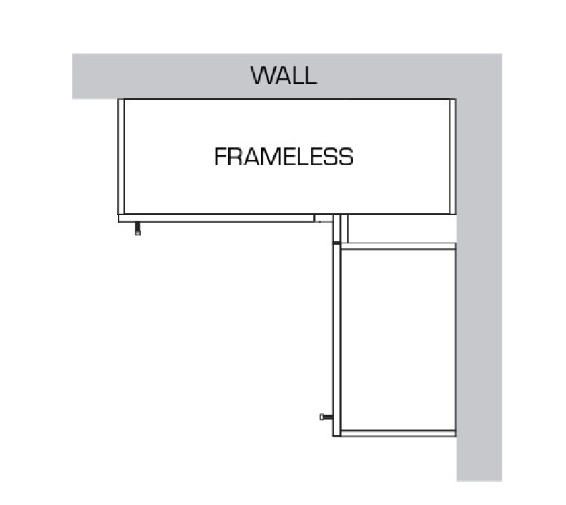 Lanz standard cabinet construction is blind upper cabinet corners and void base cabinet corners. In face frame cabinet construction an optional upgrade blind base corner is available in partial 12″ or a full 24″. Frameless construction only allows for a 12″ blind base corner.