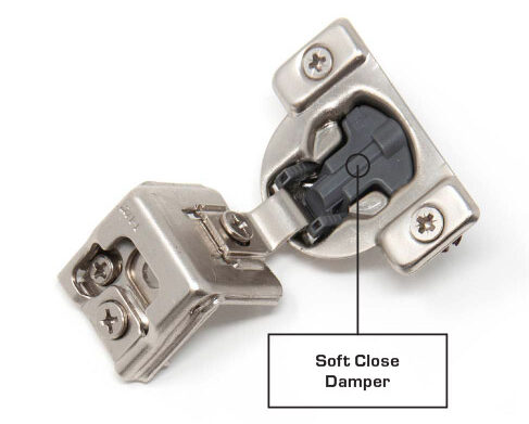 SOFT-CLOSE cabinet door hinges work like self-closing cabinet hinges but with the addition of a piston that absorbs the excess energy. This hydraulic piston mechanism with sound dampers gently guides the door through the arc of the swing and into contact with the cabinet minimizing the noise of the door shutting while also extending the lifespan of the doors.