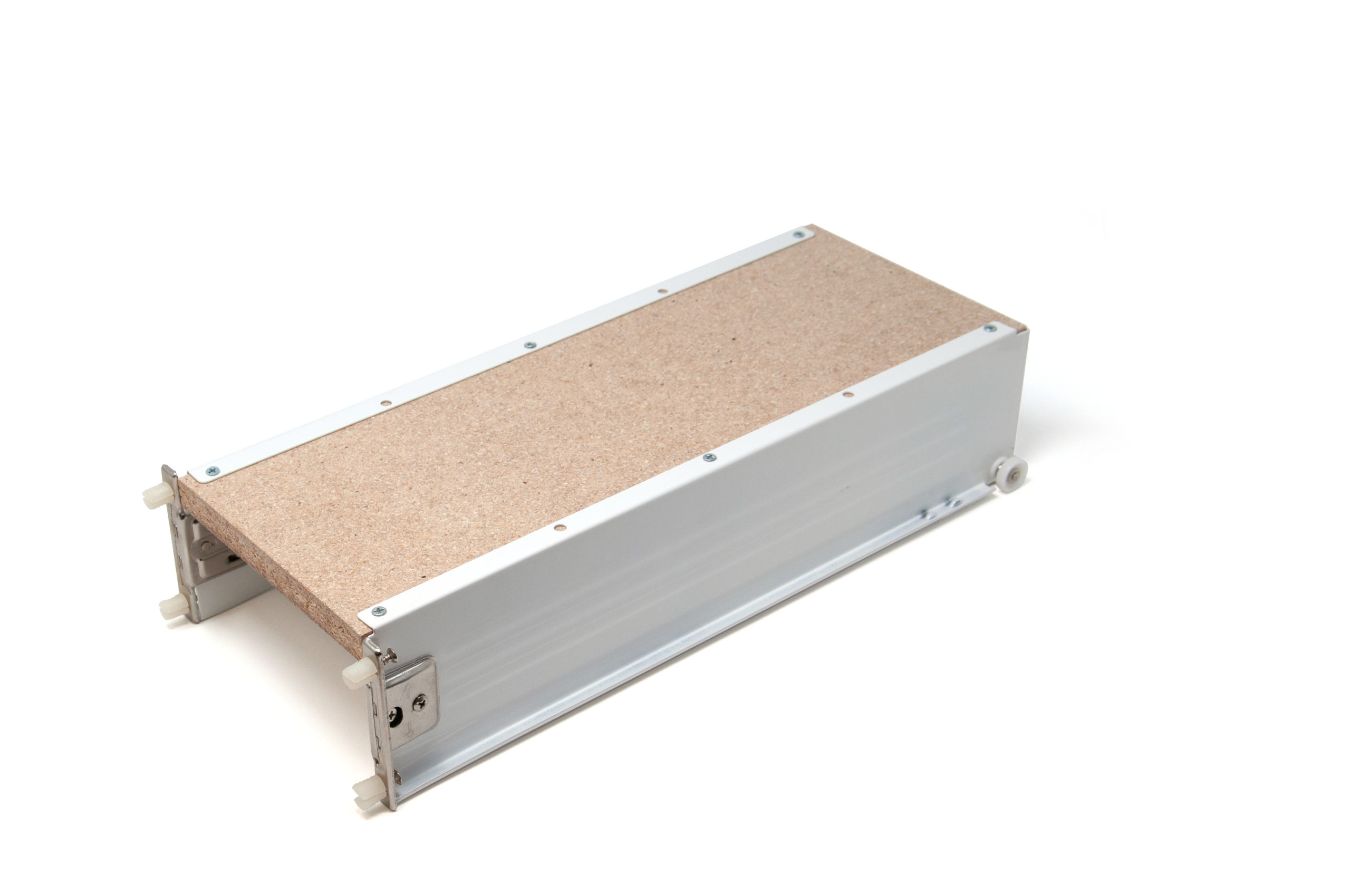 • White metal sides, ⅝” particle board, MDF, or plywood back and bottom