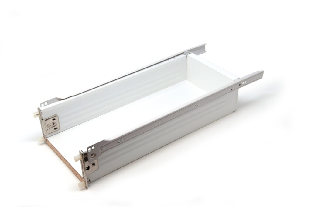 Our standard metal-sided drawer box is our best value. Standard close, three-quarter extension guides are integrated into the drawer for a clean profile when drawers are open.